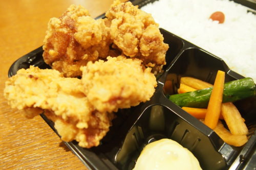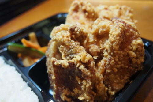 この60g以上ある”からあげ”が4つも入っていて、お弁当のふたを閉めるのもやっとの大きさ。