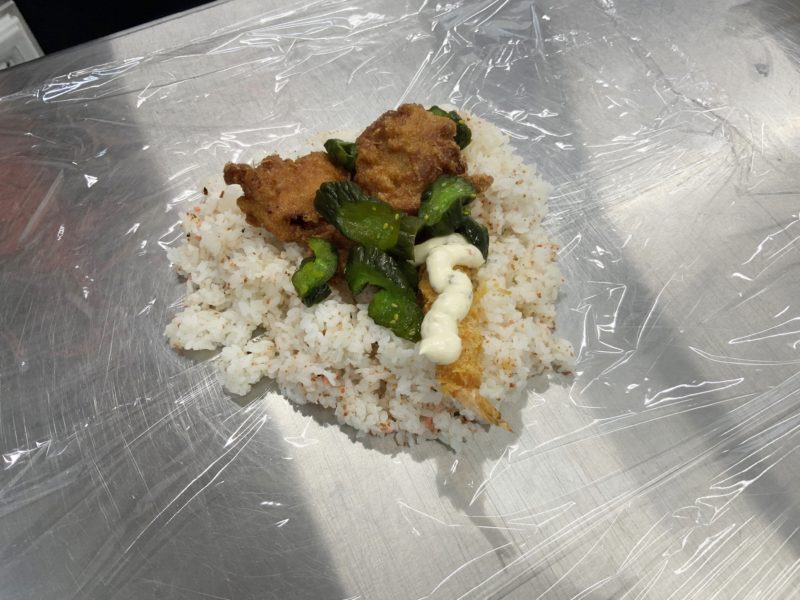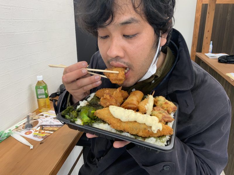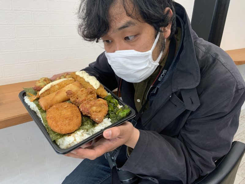 作ってくださったのは店長の福田さん、23歳。若い。東京にあるデカ盛り弁当のお店を見て、私も!とお店を開いたそうです。