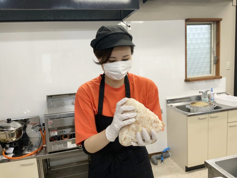 それが「1キロおにぎり」。ちょっと作ってるところ見たいとお願いしてみました。