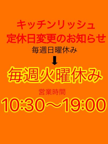 今までは毎週日曜日がお休みでしたが、以降は毎週火曜日がお休みとなります!