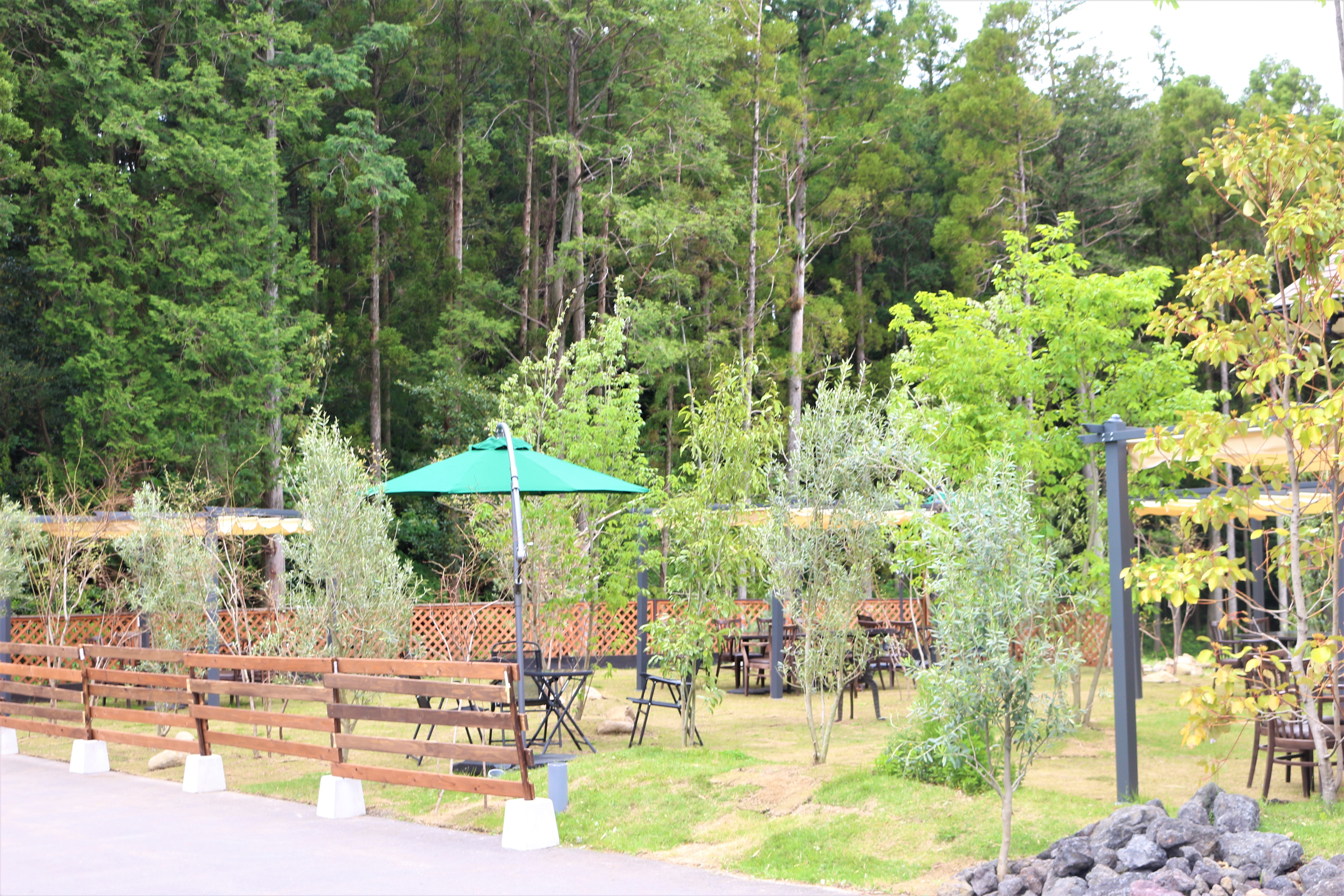 広い敷地の中には多数のテーブル席。一つ一つが離れているので気兼ねなく利用出来るのがいいですね。