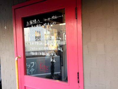 オーナーさんに尋ねると以前はこちら「フェテ・ド・パン」という名前でベーカリーとして7年間営業していました。しかし、諸般の事情によりベーカリー営業を2017年7月上旬に終了されたとのこと。