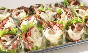 スライダース(ミニバーガー)3180円、にローストビーフ(15カップ2640円、9カップ1585円)、
