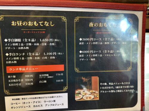 李白ランチ(1100円)は、