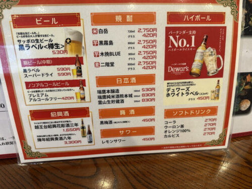 アルコールはこちら、紹興酒はボトルで!