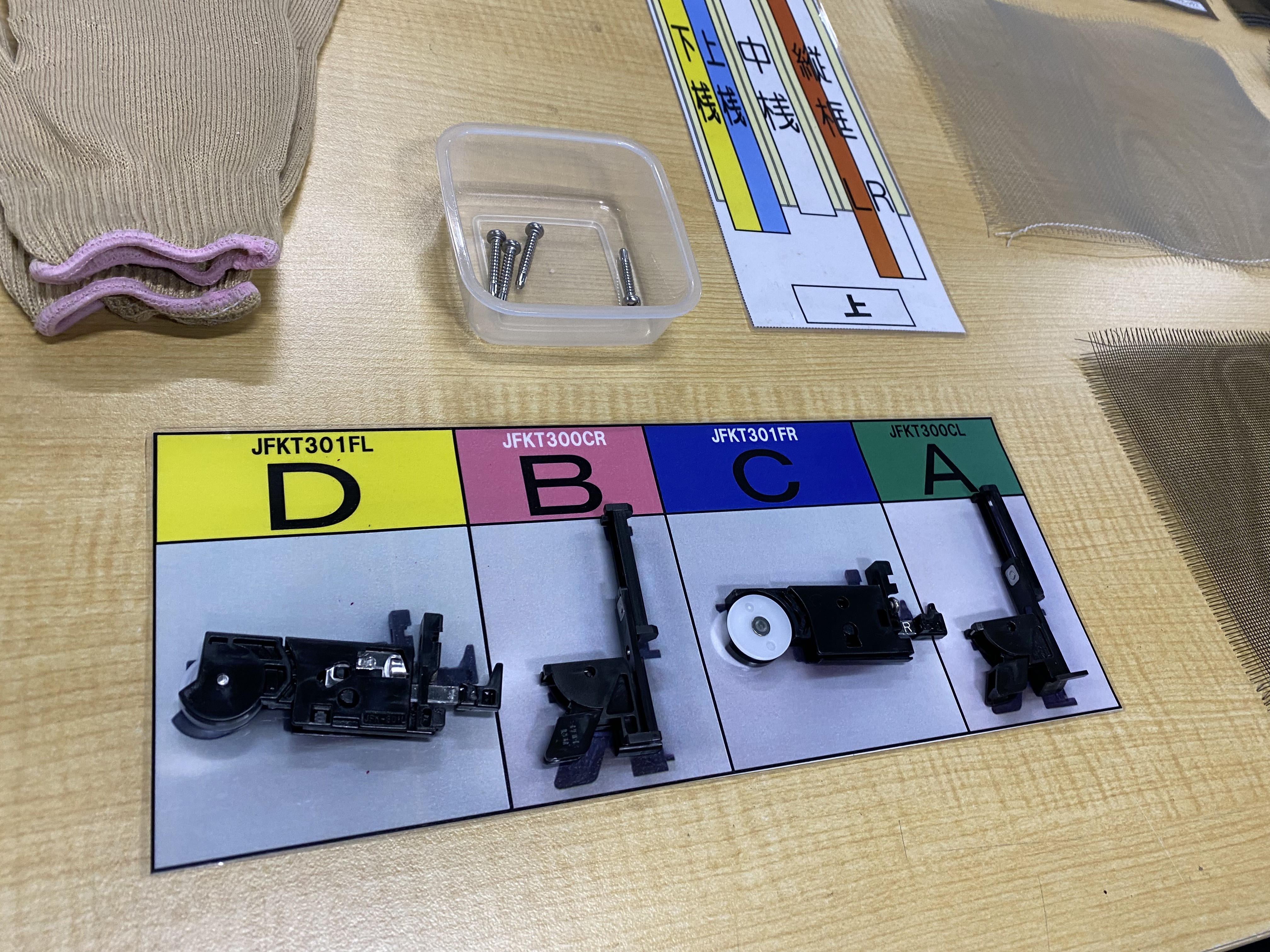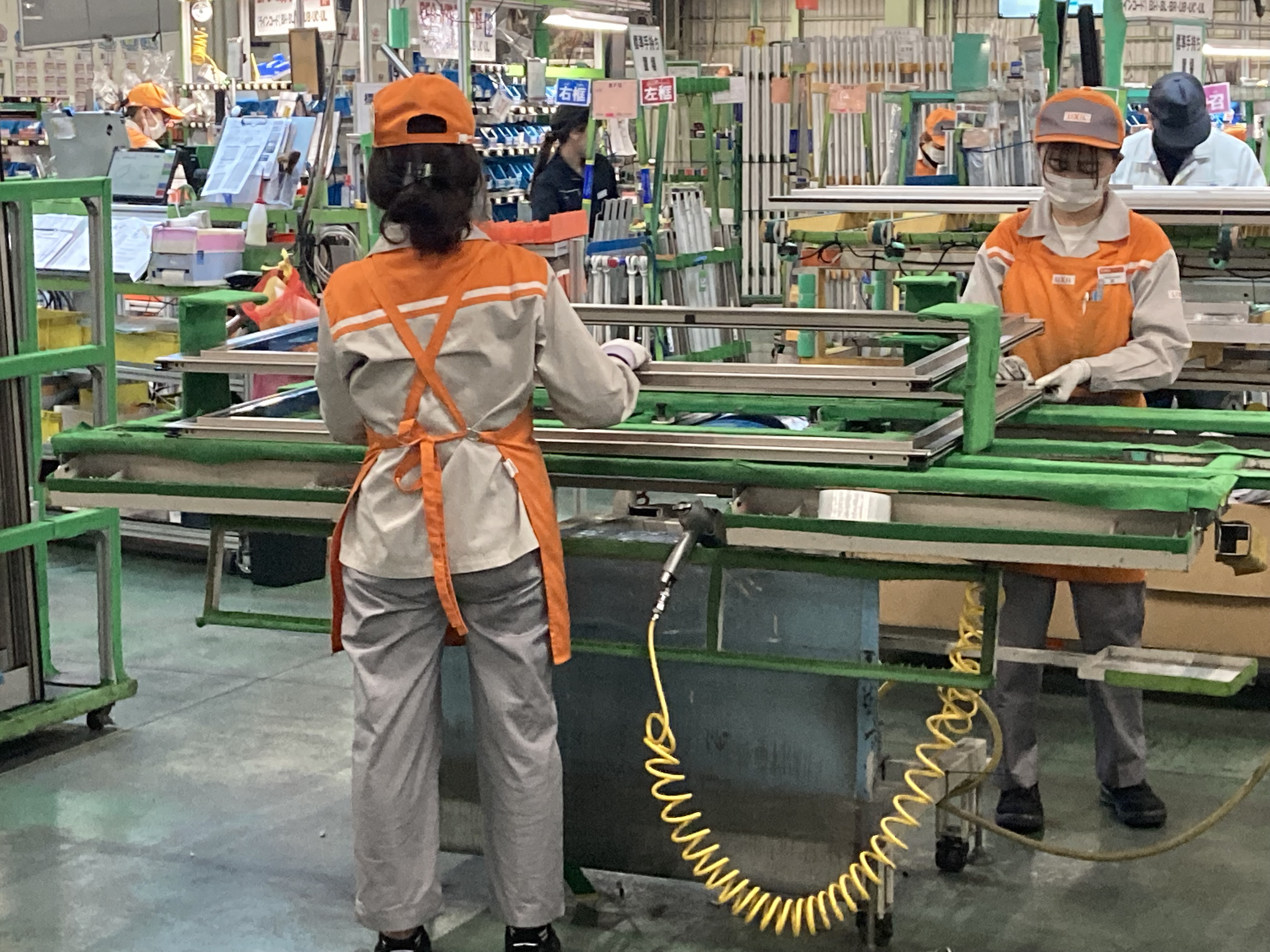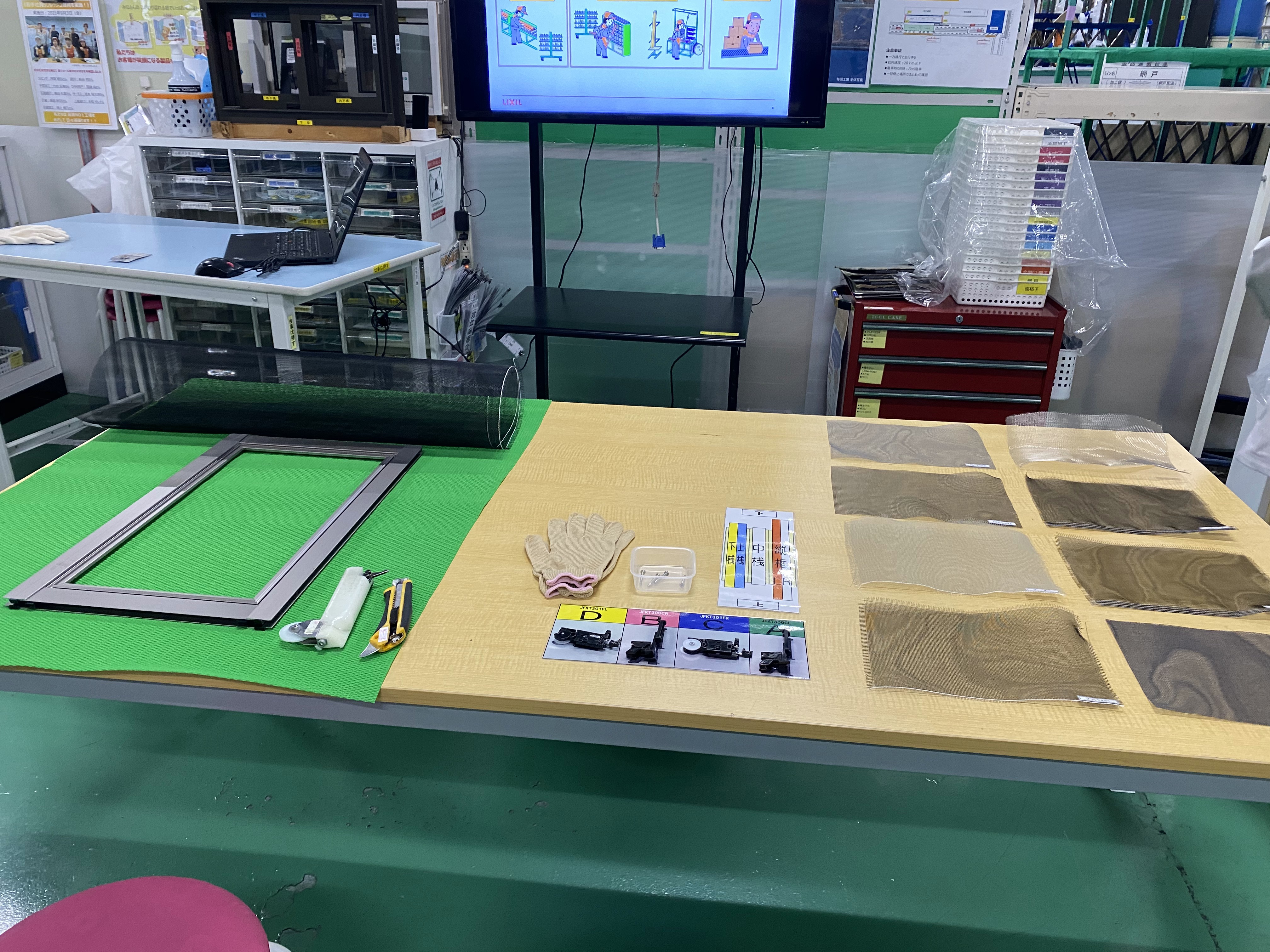 技能実習生もまずは今から伊藤が行う網戸張りの研修を濱崎さんから教わり、それができたらそれぞれのラインに異動という流れが一般的なんだそう。