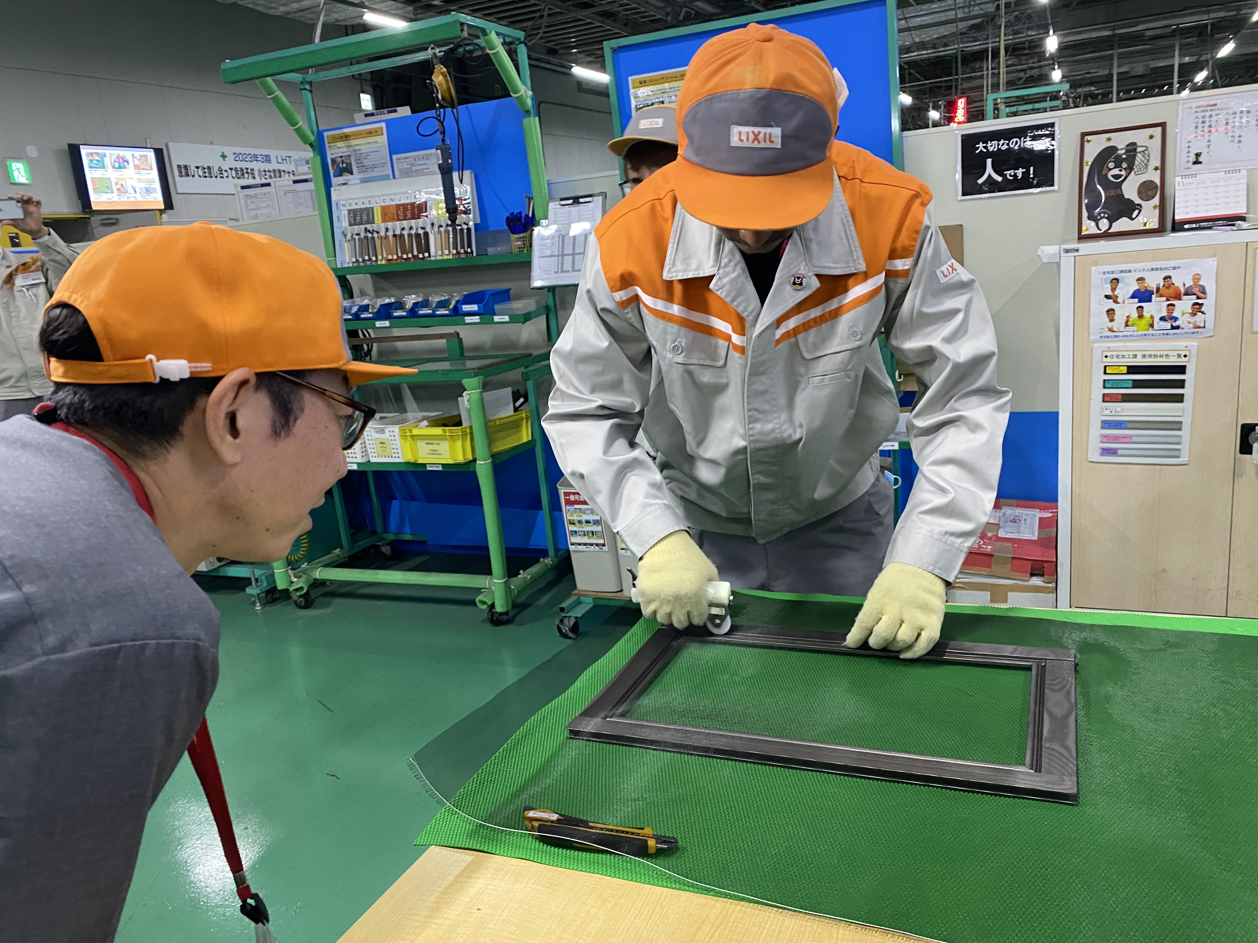 「はい!それでは今日伊藤さんに行っていただくのは網戸張りです!担当のグガネシュさんと濱崎さんです!」
