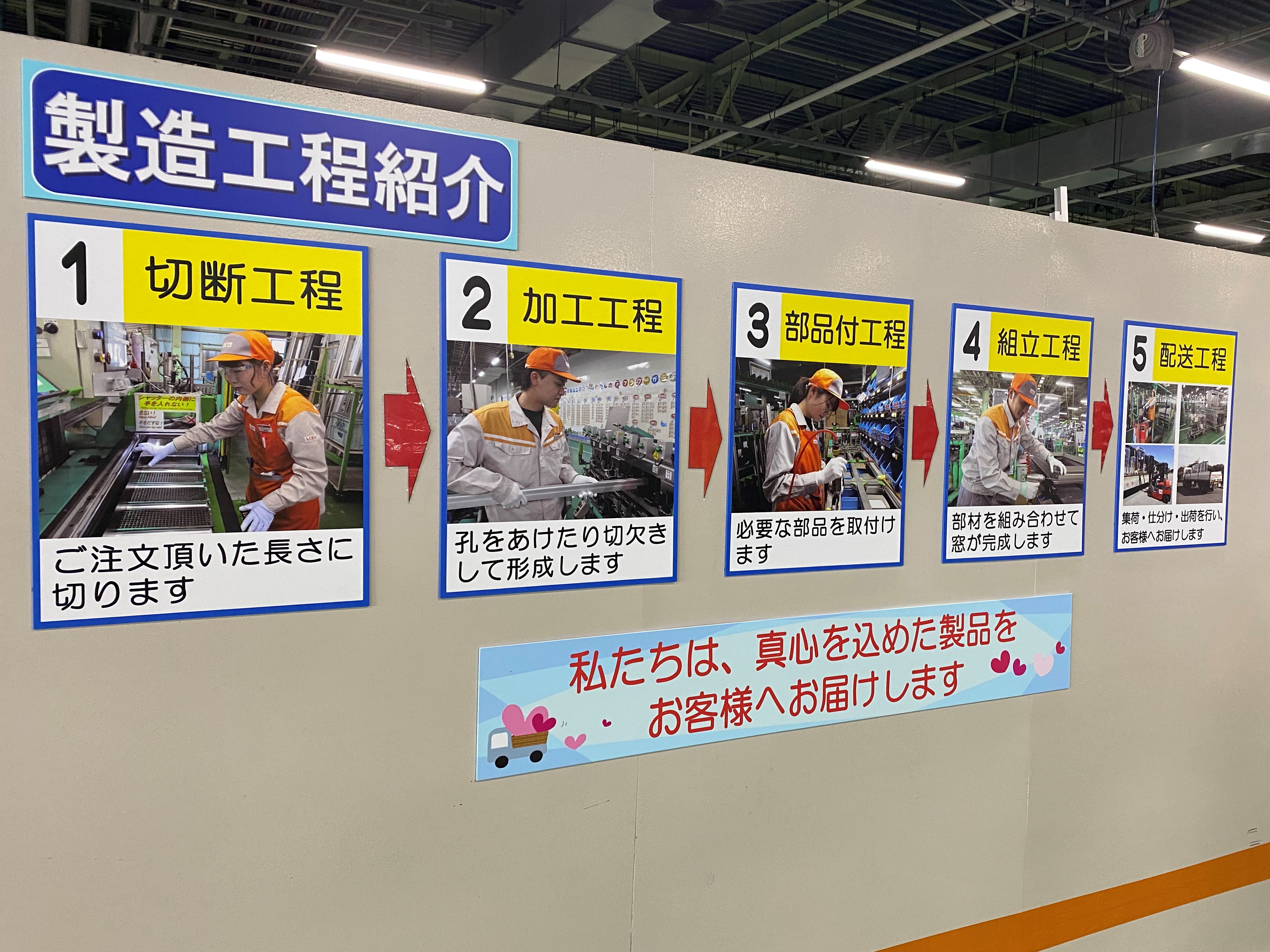大まかに分けてこんな感じで作業を行います。さらにここから細分化され1つのサッシを完成させています。