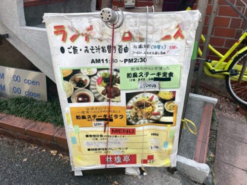 階段の下にメニューの看板があるので、こちらから2階へと上ります。