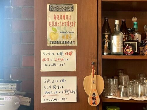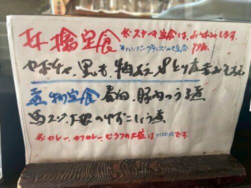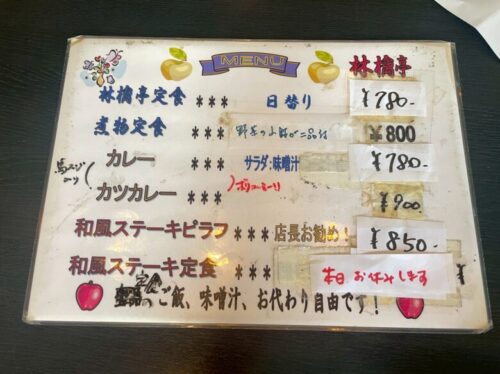 メニューは、日替わりの林檎亭定食や煮物定食、カレーや和風ステーキピラフなどがあり、こちらのメニューも、価格改定にともない手書きの張り紙をしながら、大事に使われているのが素敵です。
