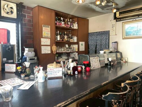店内は、カウンター席が並ぶ、こじんまりとした懐かしい雰囲気。