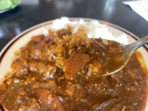 食べてみると、しっかりと濃厚な味わいで、人参や玉ねぎなどの野菜もたくさん入っています。