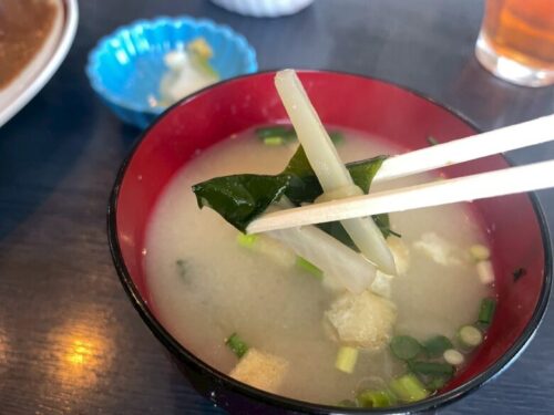 優しい味わいの白みそのお味噌汁も、野菜たっぷりのサラダも、カレーの箸休めにぴったりで、しかもヘルシーなのが嬉しいところ!