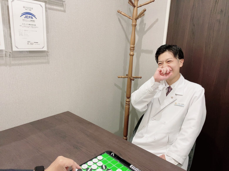 以前、お邪魔したメンズ脱毛専門店RINXにいるスタッフが人生においてオセロ負けなしとの情報を入手。