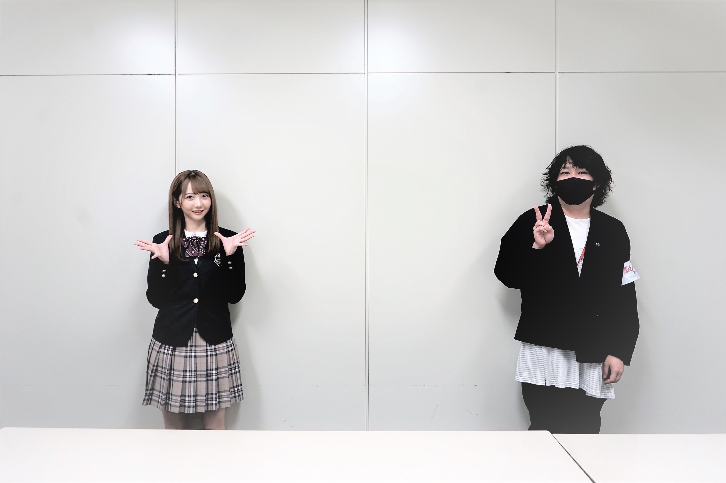 ソーシャルディスタンスを取ったうえで、2ショット撮らせて貰いました。顔小さ過ぎる。なんかトリックアートみたいになった。