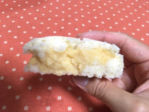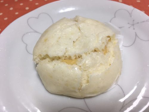 こちらがクリームパン。蒸しパンの割れ目からはみ出すクリームが、懐かしく感じられます。