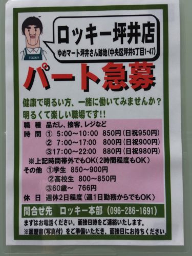 今年の5月31日に閉店したゆめマート坪井。その跡に、今月末、地元熊本のスーパー、ロッキーがオープンすることになりました!
