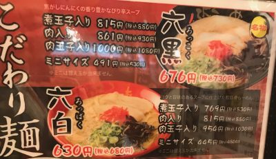 「六黒ラーメン」と「六白ラーメン」