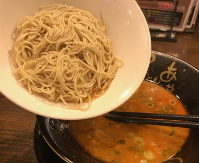 麺は全粒粉を使ったもちもち麺。福岡発ということで細麺を想像しておりましたが、意外にも中太麺です。