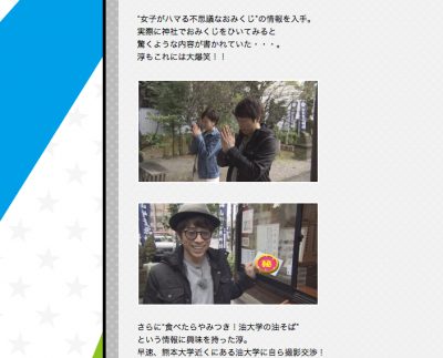 毎週土曜正午から放送されている番組『ロンプク☆淳』の「ツイっ旅」という企画が熊本市で収録が行われており、番組が5月13日(土)にKAB(熊本朝日放送)にて12時~から放送されるそうです。