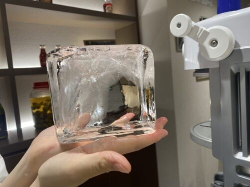 ちなみに、こちらは使用できない氷。表面に霜が降っている状態で冷凍されているため、解凍するまで状態が分からないそうです。