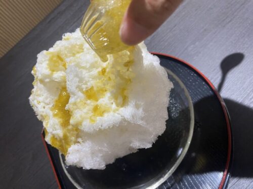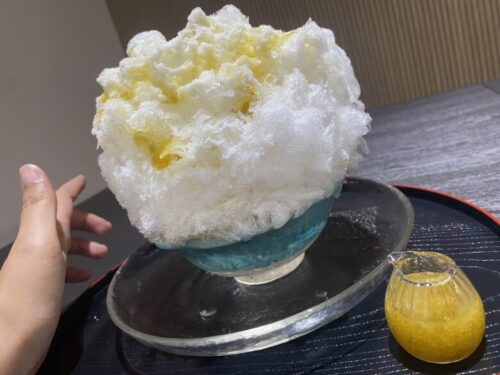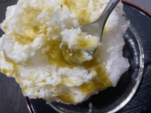 氷の温度を予め上げておいたり削り方を工夫されることで溶けやすく、その分頭痛が起きにくいそうですね。結構サイズが大きいと思いましたが、ペロリと完食いたしました。