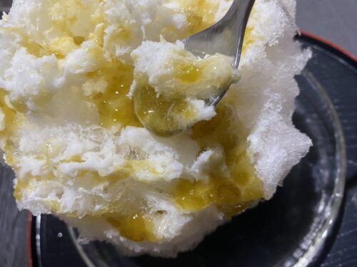 スプーンを差し入れた「サクッ」という感触が既に屋台のかき氷とは別物です。