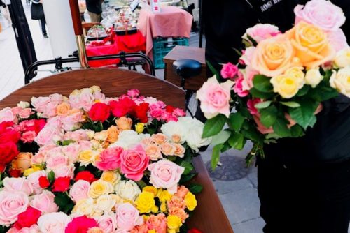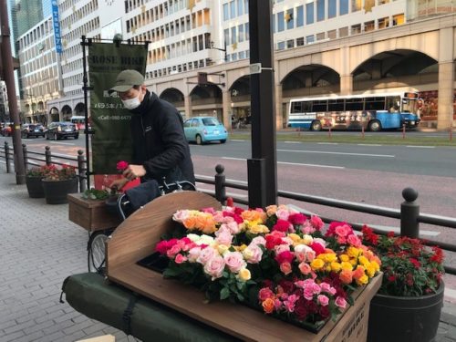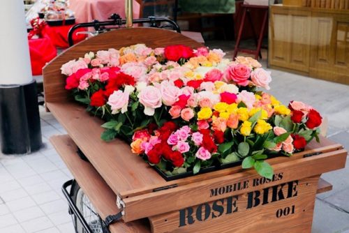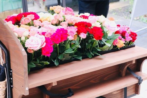 すごく素敵です。生薔薇の自転車移動販売。