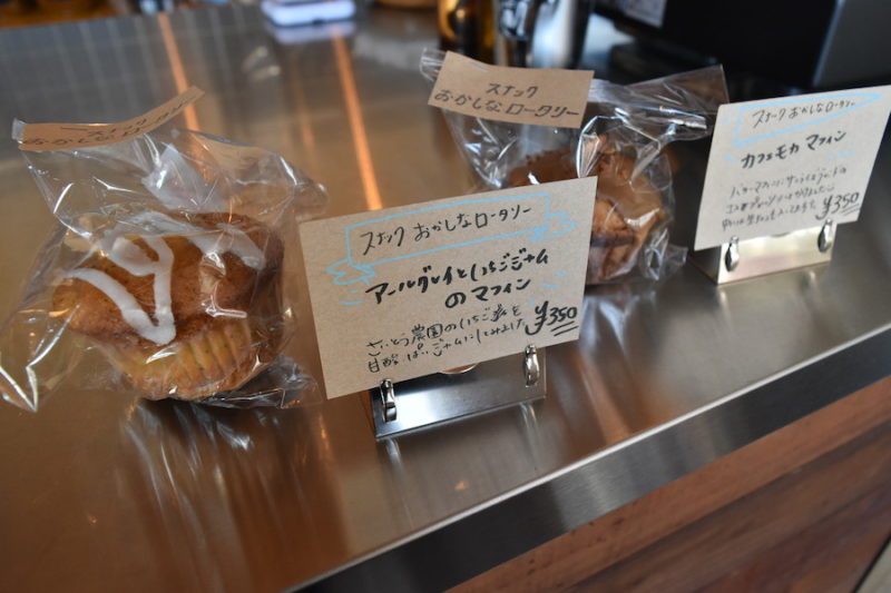 店内では、お店オリジナルのスイーツもいただけます。この日はマフィンがありました。イートインでいただくこともできますし、テイクアウトも可能ですよ。