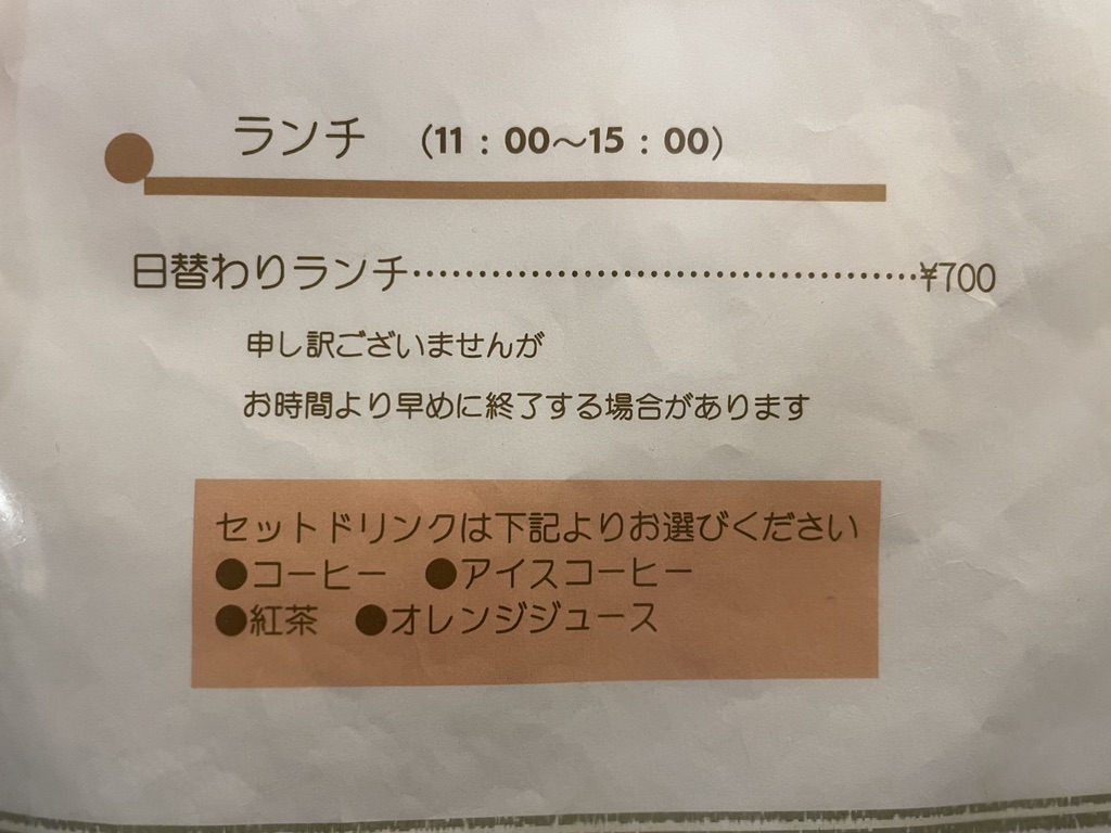 日替わりランチを注文します。ドリンク付きです。