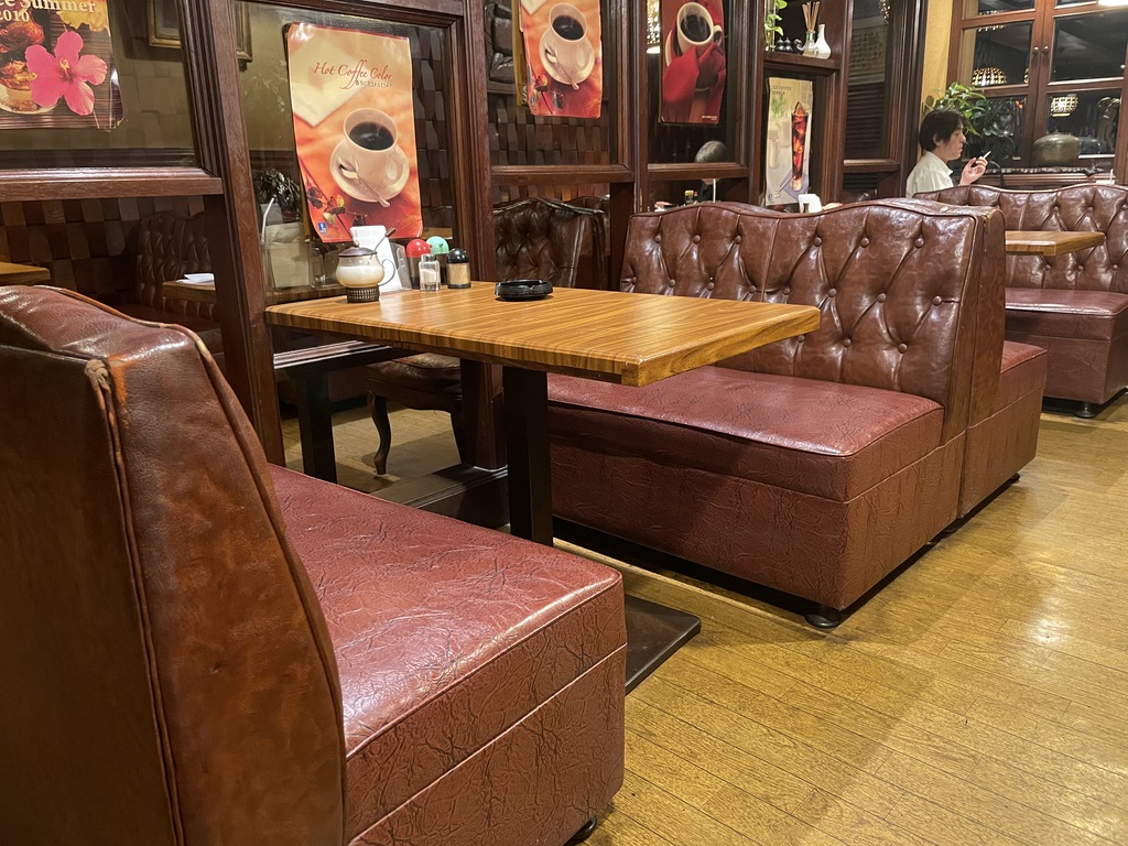 全体的にブラウンな店内。昭和の喫茶店ってこうだったよねー。