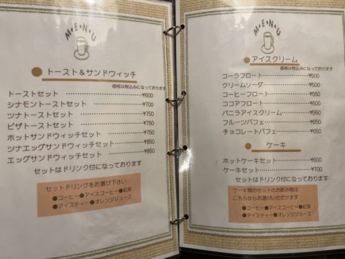 トースト系のメニューとデザートメニューもあります。フルーツパフェ!!今度来た時頼もう。