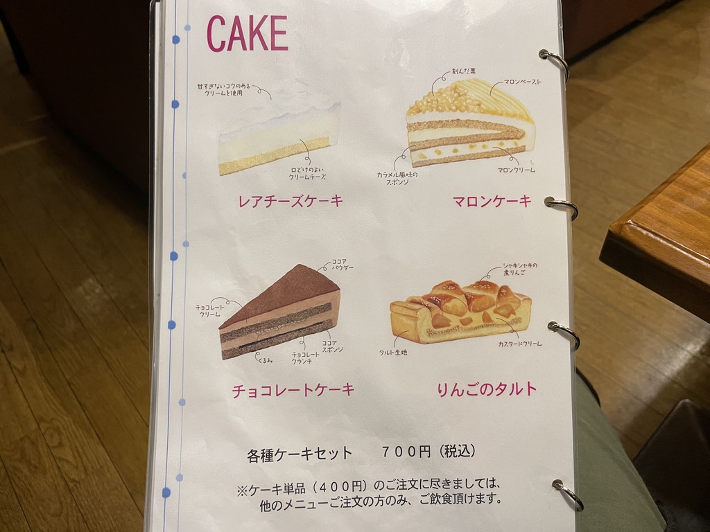 ケーキメニューがこちら。りんごのタルトだと!!今度来たとききき…