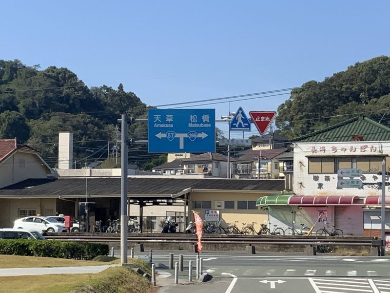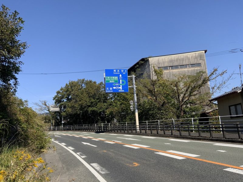 三角港を出て、左折すると国道57号。天草と書かれていますが、すぐに宇土方面への道に繋がっています。