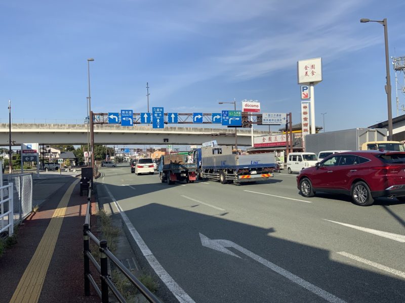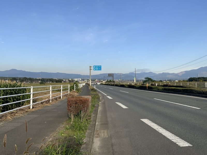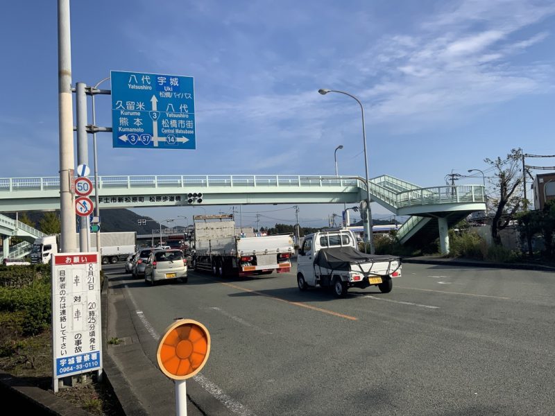 海の見える道を過ぎたあと、宇土市の松原歩道橋で左折します。ここからはしばらく国道3号と合流した道になります。
