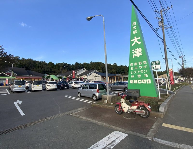 途中で道の駅大津があります。この先を左折すると「国道57号北側復旧ルート」に繋がりますが、自動車専用道路ですので、50ccの原付では通行できません。