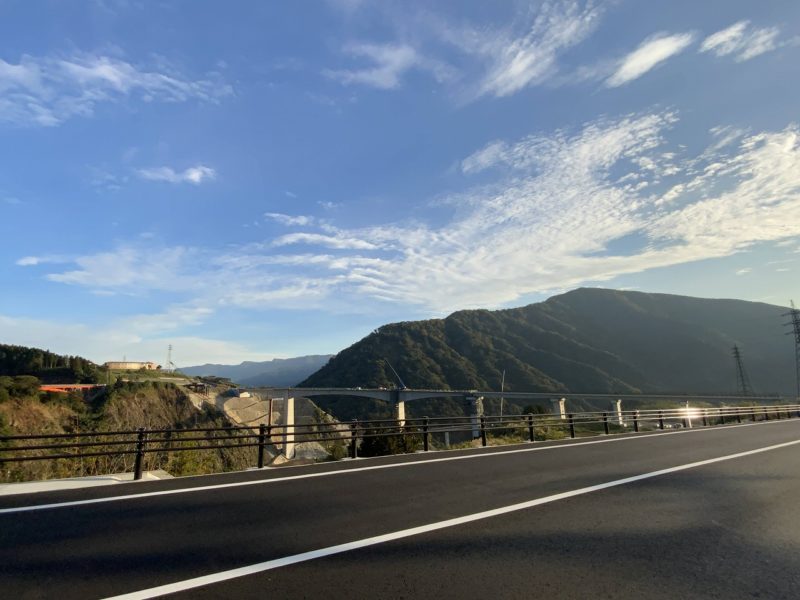 3月の供用開始に向け工事が進む新・阿蘇大橋を背にさらにまっすぐ進みます。