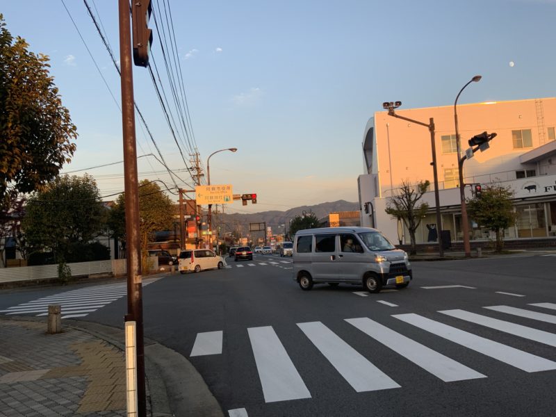 阿蘇神社の前を通過した頃にはもう町並みが暮れなずみ始めています。