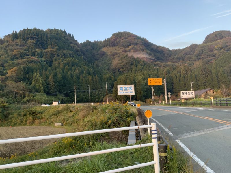 ここに来て、最後の難所「滝室坂」です。阿蘇と大分をつなぐ主要な道ですが、勾配も激しく降水量が多い日には通行止めになっちゃうのでいまトンネルを掘っているところ。
