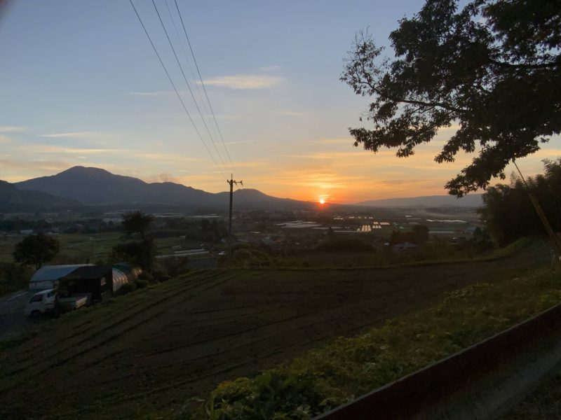 阿蘇の町を照らす夕日を眺めながら悟りました。あかん、日没間に合わんかも。
