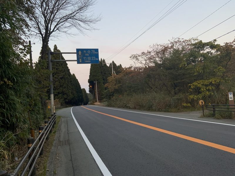 案内板はすでに「大分」「竹田」と県外を指しています。いよいよ県境に近づいてきた感じがします。