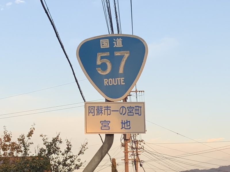 国道57号。長崎市から大分市までをつなぐ国道で、県内では宇城市三角町から阿蘇市まで続いています。熊本市内に住んでいると東バイパスのイメージが非常に強いですが、実はめちゃくちゃ長く、海から山へと続いている道路。50ccの原付で端から端まで走ってみました!
