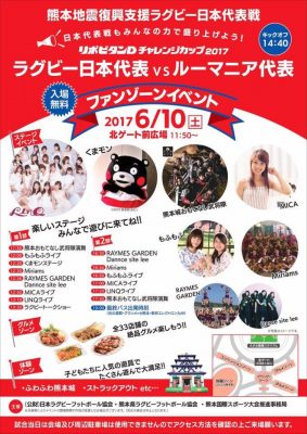 復興熊本へ国際大会が次々と!「ラグビー日本代表国際テストマッチ“日本VSルーマニア”」が6月10日に開催!!!