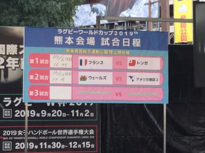 熊本では、フランスVSトンガ戦、ウェールズVSアメリカ地区2戦など全2試合の開催が決まりました。トンガやウェールズには熱狂的なサポーターが多く、訪日外国人が増加するそうです!