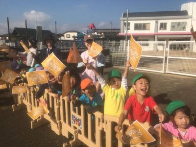 コース沿いにある保育園では、園児たちも笑顔で応援してくれました。