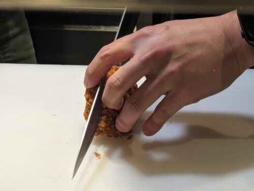 火が通りすぎないよう細心の注意を払い…揚げる温度や、時間を研究に研究を重ねられたそうで、まさに技の極み!最高のピンク色です。