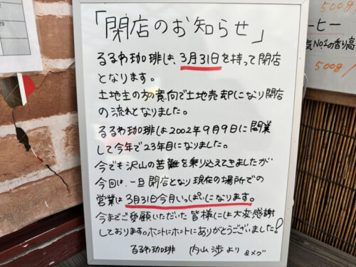 店舗が閉店しても、「コーヒー焙煎研究所わたる」では引き続き営業はされるそうです。