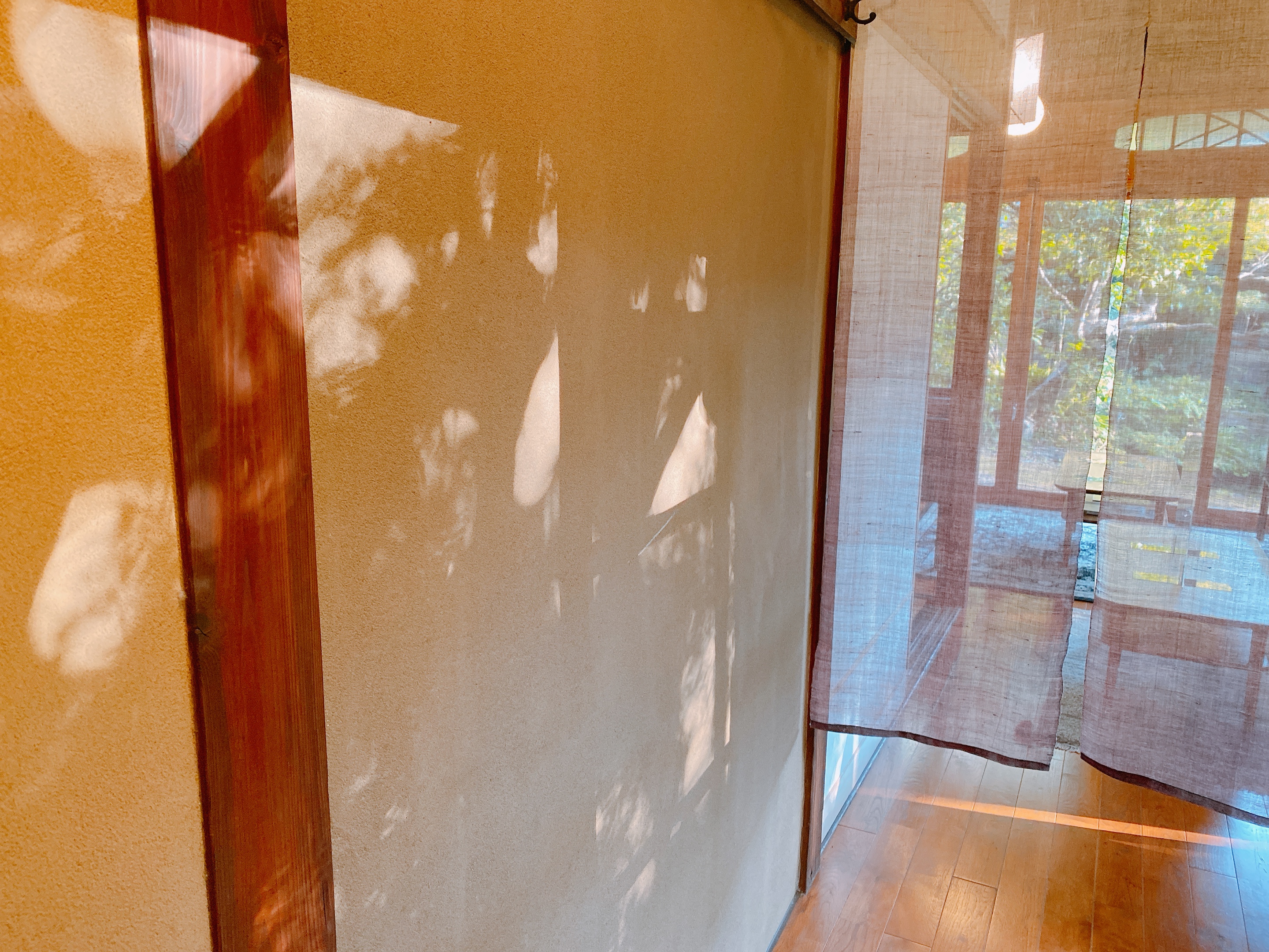 光と影が壁のデザインのようになっていたり。