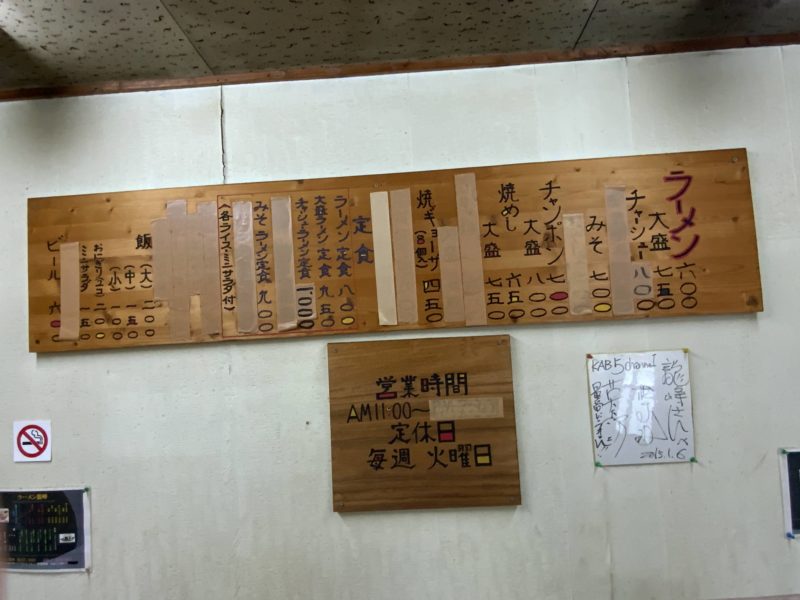 メニューはラーメン、ちゃんぽん、焼き飯、餃子とシンプル。