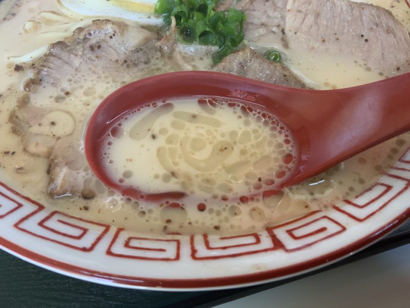 スープは濃厚な豚骨スープで、癖は少なく熊本ラーメンの中では食べやすい部類。コク深さの中にほんのり頭骨の甘みを感じますね。